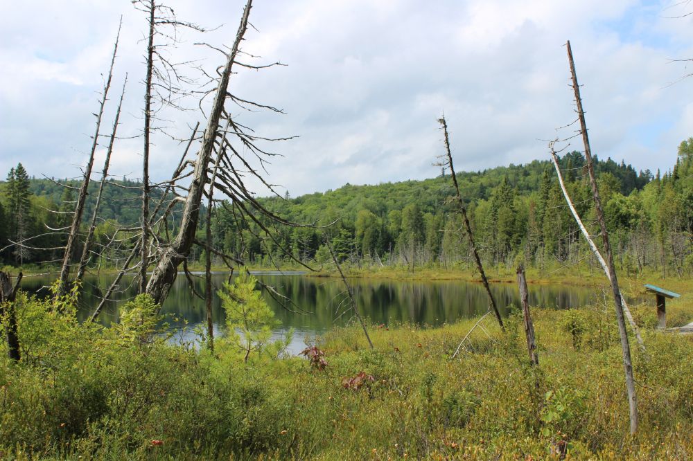 入园不久就来到布沙尔湖(Lac Bouchard)边,但见湖面澄明,幽美恬静,仿若仙境。