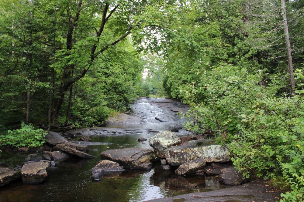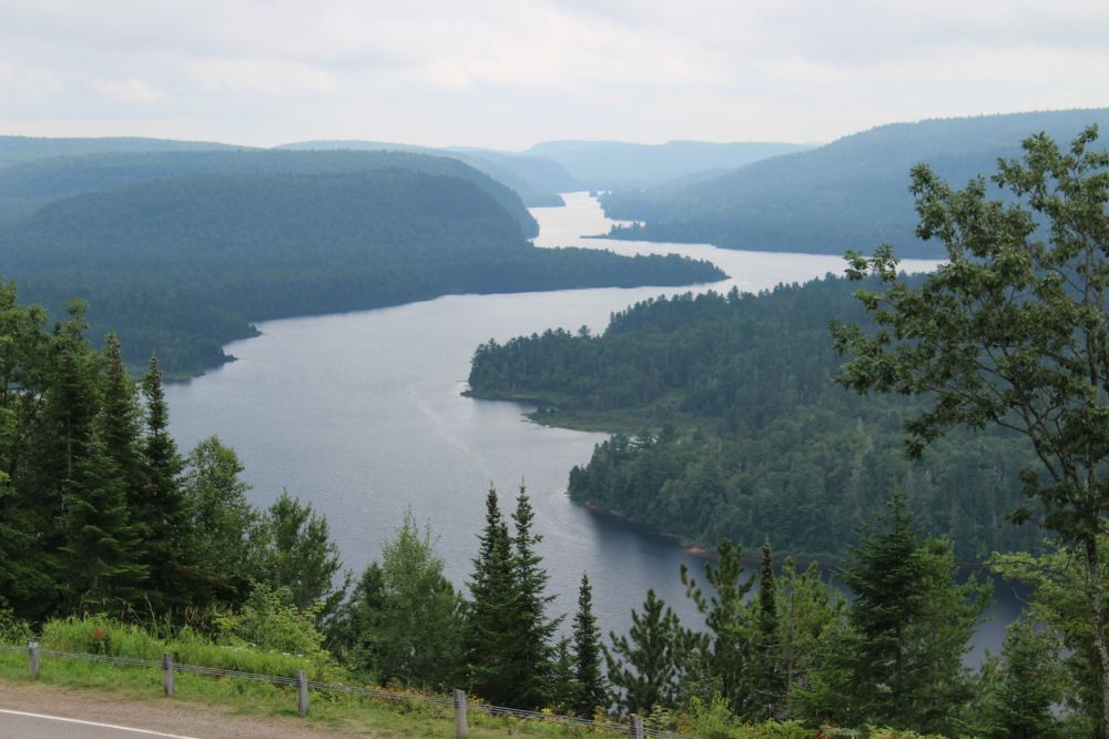 整个公园共有多达150个形状各异,大小不等的湖泊,山林之间生活着麋鹿,黑熊,海狸等多种野生动物,生长着白松,红松等针叶树和其他混合落叶树种。置身这样幽静的环境下,访客可进行登山,野营,游泳,划船,垂钓等多种有趣而丰富的野外活动。我们因为只是顺道游,时间有限,只能在入园之后询问公园的工作人员,请他们在地图上圈出一些最不应错过的景点。我们则按图索骥,在大约三四个小时内,从公园东部的入口处开始,沿着近似马蹄形的线路,穿行过整个园区,最后从西侧的入口处离开公园。走马观花,蜻蜓点水,不知错过了多少值得到访的景点。