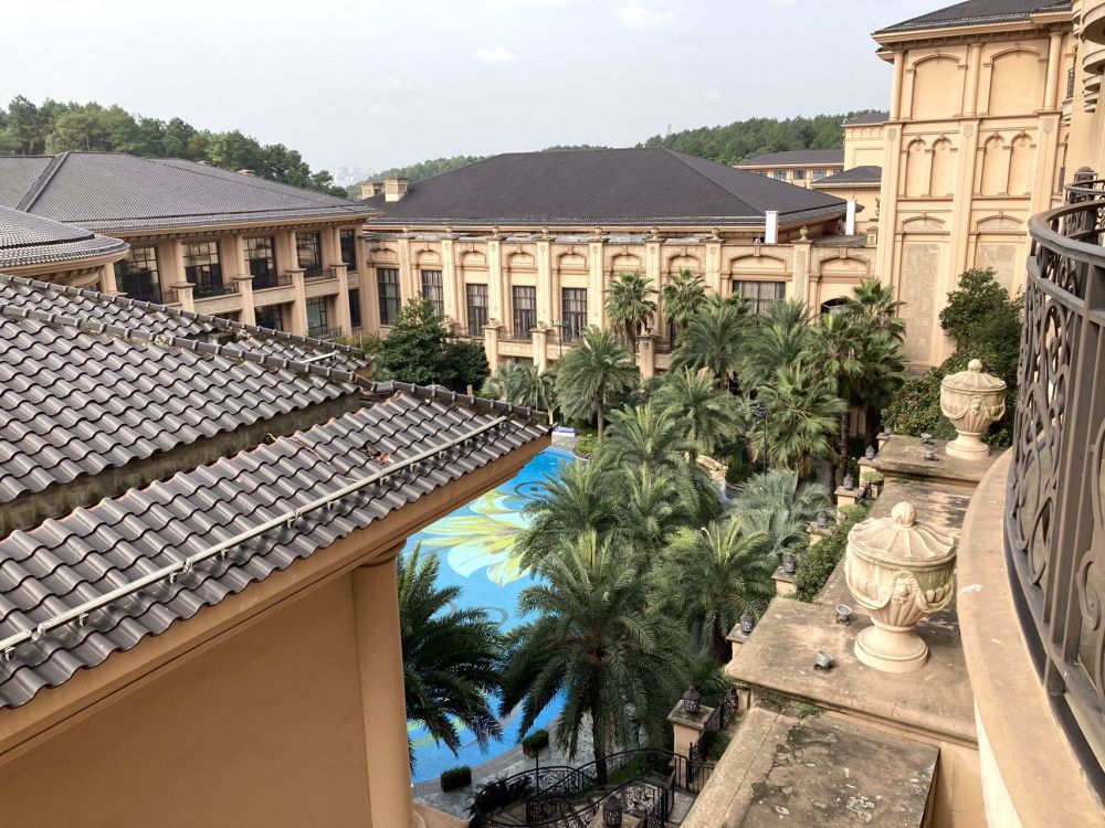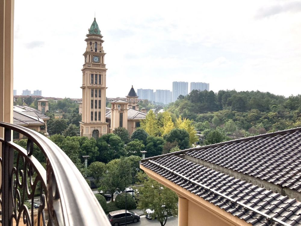 会议举办地是在成都的一家五星级酒店。看得出周围建了很多西式建筑,酒店掩映在一片郁郁葱葱的绿树之间,环境不错。