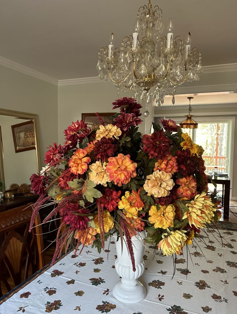 桌上铺上感恩节应时的桌布