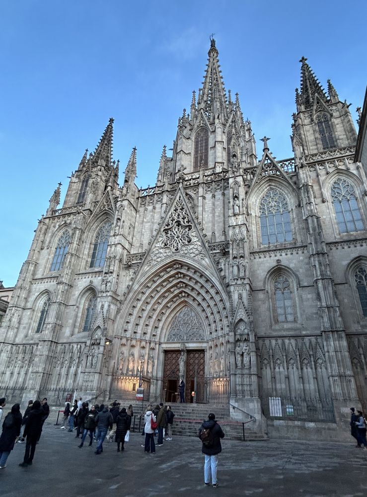 巴塞罗那大教堂,是一座哥特式大教堂,建于十三至十五世纪,主要工程于十四世纪完成。 环绕鹅井 (Font de les Oques) 的回廊于 1448 年竣工。