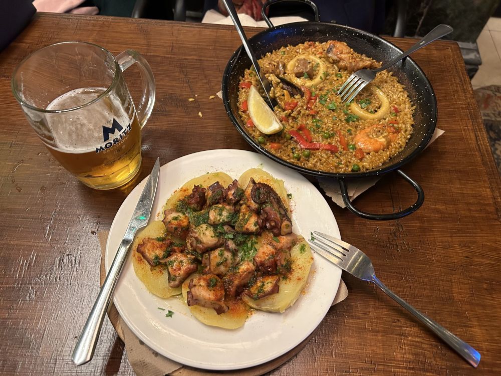 在兰布拉大道找到一间餐馆,吃西班牙海鲜饭(Spanish Paella)。