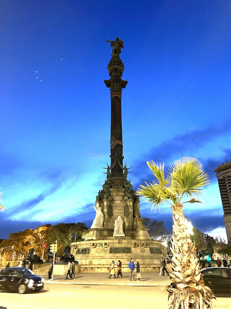哥伦布纪念碑(Columbus Monument)是一座高 60 米(197 英尺)的克里斯托弗·哥伦布纪念碑,位于兰布拉大道的下端。 它始建于1882年,于1888年巴塞罗那世界博览会前竣工。纪念碑的最顶端矗立着一座 7.2 米(24 英尺)高的哥伦布青铜雕像,他面朝大海,为发现新大陆指明了方向。