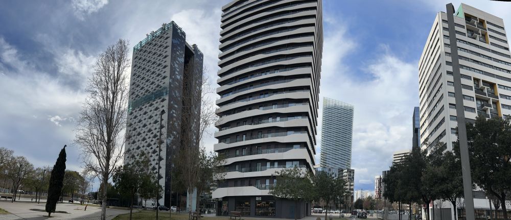 离开机场,到达酒店,刚过中午时分。这次住的万丽酒店 (Renaissance)坐落在巴塞罗那南部的 Hospitalet de Llobregat 区新欧洲广场,一座 110 米高的黑白双塔矗立在棕榈树花园中,环境优雅,清新怡人。