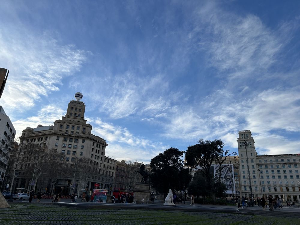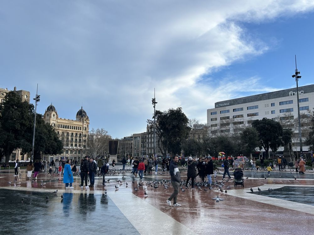 走到格拉西亚大道的南端,到达巴塞罗那市中心的加泰罗尼亚广场(Plaça de Catalunya)。广场占地约5万平方米,以其喷泉和雕像、靠近巴塞罗那一些最受欢迎的景点以及聚集在这里的鸽子群而闻名。