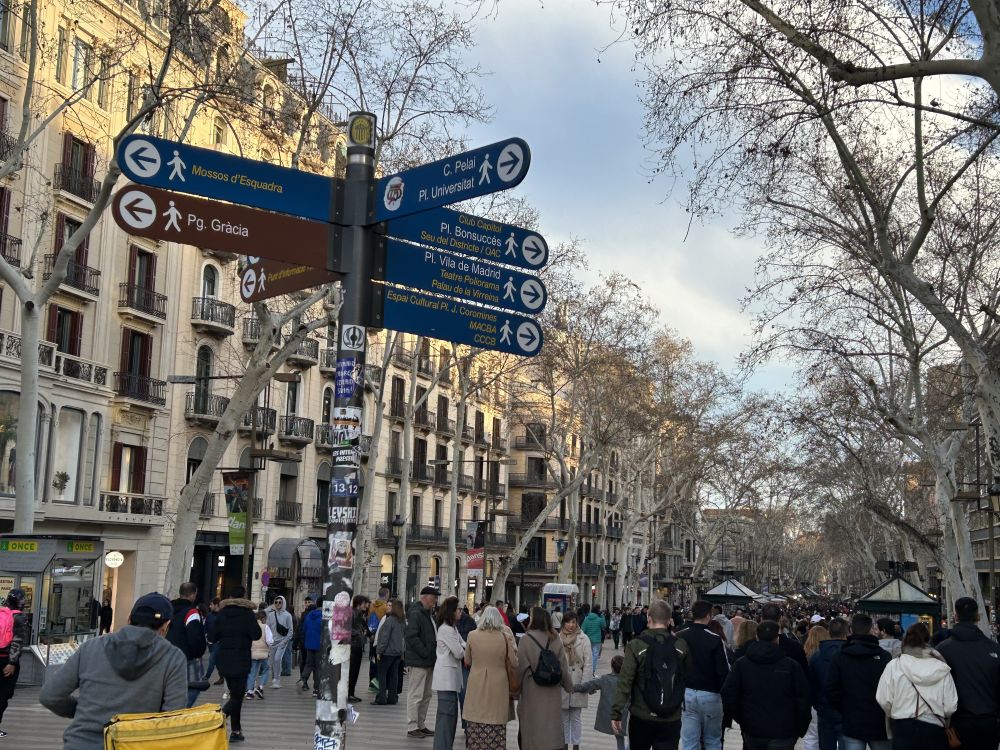 继续南行,离开广场,再左转,巴塞罗那最受欢迎的兰布拉大道 (La Rambla)就在眼前了 。这条绿树成荫的步行街,全长 1.2 公里(3⁄4 英里),一头是加泰罗尼亚广场,另一头是贝尔港的克里斯托弗·哥伦布纪念碑。 著名的老城区哥特区 (Gothic Quarter) 和西边的拉巴尔 (El Raval) 街区之间的边界。