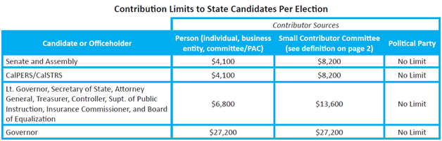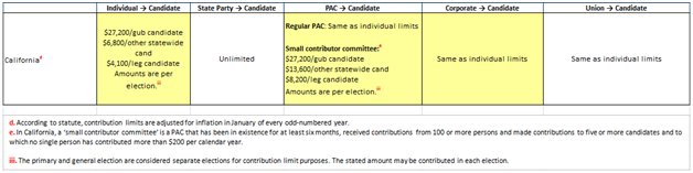 2. 对加州公职的竞选人,直接政治捐款的上限为(6) (7):