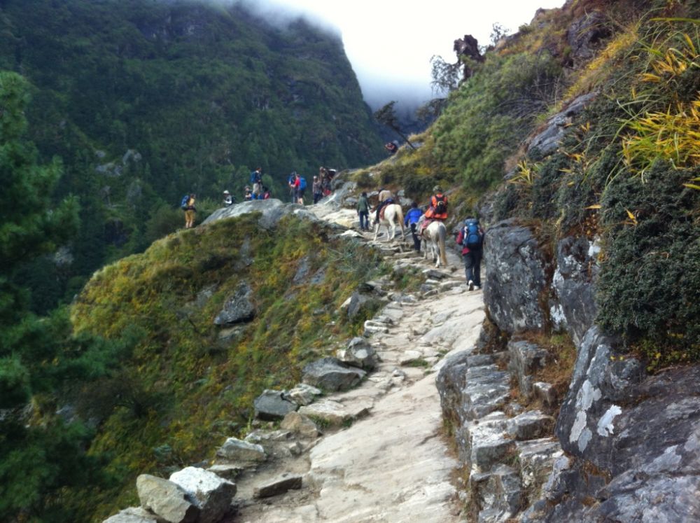 天气好了,一架架飞机把世界各地来的徒步者从加德满都送进山来。沿路碰到一批批上来的徒步者,人真多。大多数是老外,退休的居多。还有骑着马的,那是一天要付125美元的。怕生就是很怀念他的那匹死去的老马,那马驮着人上山,帮他赚了许多轻松的钱。
