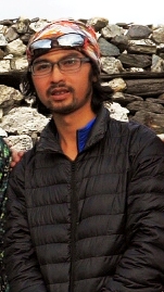 去年十月,在喜马拉雅山的一个小村庄-Chukhung(海拔4745米),我跟“小邦”,已6次来攀岛峰(海拔6189米)冰崖的中国小伙子,相遇。那天我跟他相约,明年一起去攀岛峰的冰崖。(小邦照片见右)