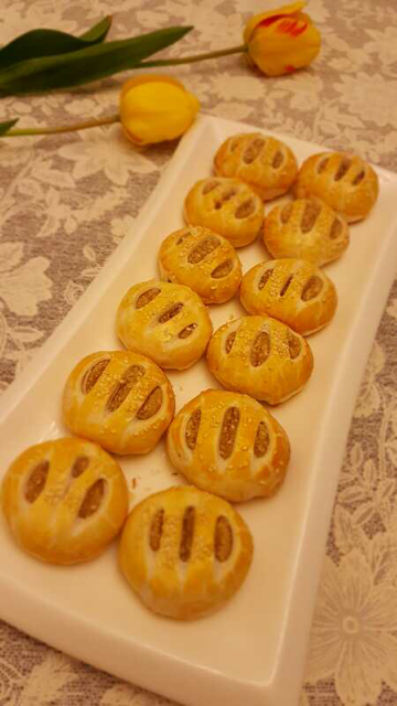 家里领导去朋友家小聚,朋友拿出北京稻香村点心款待他,他回来就告诉我其中一款他喜欢的芝麻馅点心,我上网查询了黒麻椒盐酥的做法,做的过程中又临时在馅料中加了自制的叉烧粒,变身为黒麻叉烧酥。