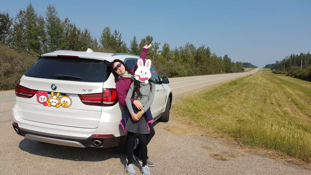 小憩后继续东行,大约20多分钟后由16号高速公路转入32号高速公路,在WHITECOURT转入43号公路,我们出发前没有仔细研究路线,只是按照GPS指出的线路行驶。途中先生遇见牧草农地便停车休息,拍照后还略有遗憾地说:可惜没有丘陵地带那种起伏的效果。