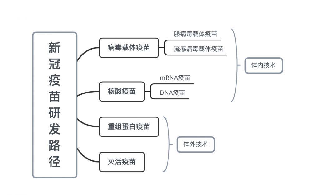 现在,我们国家研发的新冠疫苗,主要有灭活疫苗、重组蛋白疫苗、腺病毒载体疫苗、减毒流感病毒载体活疫苗、核酸疫苗这5条技术路线,多种疫苗齐头并进,确保总体成功率。