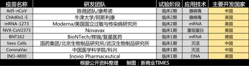 尽管公司和实验室在获得融资的阶段较为乐观,但一般认为会在2020年年底至下一个季度/学期之间.美国国家过敏和传染病研究所所长安东尼·福西(Anthony Fauci)表示“谨慎乐观”,因为尽管在这七个月中取得了科学成就,但仍然存在疑问。“直到我们有更多时间在临床试验中观察志愿者时,我们才能知道疫苗是否长期安全。”3. 哪个是最先进的?约200个研究中有6个已经有了非常大的进展,其中CanSino Biologics(在中国获得部分地区测试),AstraZeneca和Oxford实验室(在巴西等国家测试),北美Moderna实验室,以及另外两个项目来自中国实验室:SinoPharm和Sinovac。 《纽约时报》在其报告中将澳大利亚默多克儿童研究所的研究添加到同一类别中,当然新闻报道较少。紧随其后的是辉瑞和BioNTech疫苗,阿根廷人参与了其II/III期试验。还有20多个其他实验室已经开始进行人体试验,其余的处于早期阶段。即使在拥有数千人的第三阶段之后,也要监视他们的表现,这一点很重要。