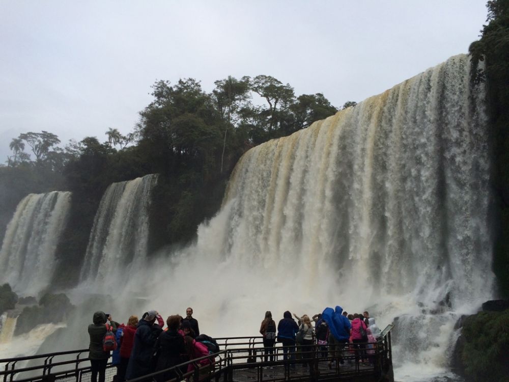 从巴西伊瓜苏国家公园步道上眺望阿根廷境内瀑布