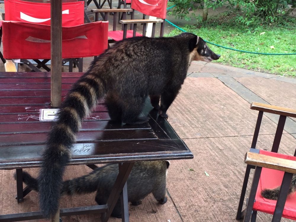 LAN Argentina 的空客320缓缓地降落在Puerto Iguazu 机场, 这里距离阿根廷一侧的伊瓜苏瀑布有6,7公里,没有Bus服务(Bus 只去Puerto Iguazu 市中心)。我们选择了一位迎上来的私人汽车服务司机,说好250阿根廷peso, 大约30美元的统一价格到伊瓜苏瀑布国家公园大门。汽车在红土地的热带雨林中穿行,10几分钟到达了公园大门。