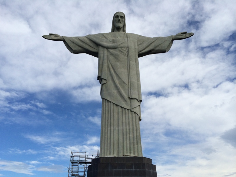 在科科瓦多山上建造一座雕像的想法始于1850年代中期,那时一个天主教神父佩德罗·玛丽亚·博斯请求巴西帝国的伊莎贝尔公主筹措资金建造一座大型的宗教纪念物。伊莎贝尔公主对这个主意不是很在意,而当巴西在1889年成为共和国后,这个设想完全被政府否定,因为当时的法律强制规定必须政教分离。第二次“在山上建立一个地标”的提议是里约热内卢大主教在1921年提出的。大主教组织了一个叫做“纪念像周”(Semana do Monumento)的活动来吸引捐款,捐款者主要是巴西的天主教徒。基督雕像的设计要求包括:须代表基督教的十字架,有一座手持地球的耶稣基督像和一个象征世界的基座。最后选择了“救世基督展开双臂”为设计外型。这座纪念雕像由法国纪念碑雕刻家保罗·兰多斯基设计,当地的工程师海托·达·席尔瓦·科斯卡监督建设。一组工程师和技师团研究了兰多斯基的设计方案,并决定以钢筋混凝土代替钢材,以便更适合十字架形状的雕像。科斯卡和兰多斯基决定以滑石作为雕像的外层材料,因为它有柔韧性高的特点,而且能够抵抗恶劣的天气。里约热内卢还特意建造了科科瓦多山的上山铁路,以便将打造雕像所需的大块石料运到山顶。1931年10月12日耶稣像在科科瓦多山上举行了盛大的落成典礼,巴西总统瓦加斯为塑像剪彩,这一天是巴西主保圣人圣母Aparecida的纪念日——圣母显灵日(又称守护神节)。 里约热内卢是本届世界杯决赛举办城市,马拉卡纳体育场为决赛场地。巴西人对足球的热爱举世皆知,在街头、海滩上,随处可见一群群足球少年。马拉卡纳体育场曾举办多次重大比赛,并诞生了足坛上的许多辉煌时刻。球场入门处有济科、罗纳尔多、小罗纳尔多、里瓦尔多等球星留下的脚印。球王贝利1969年11月9日在该足球场踢进他本人的第1000个进球。