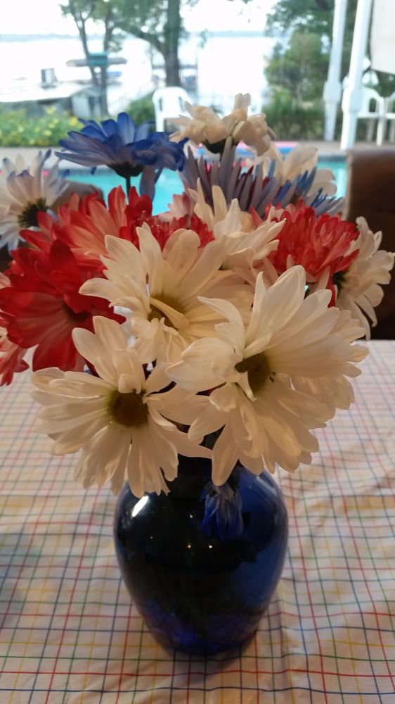 周日的爬梯在大叔表哥家举行,这是表嫂自制的两款红白蓝的插花,简洁却很有点油画的感觉。