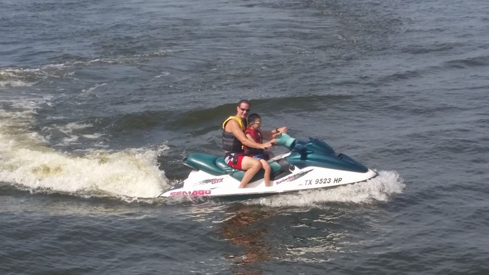 大叔则等不及要出门去湖上飚快艇,先抓上迫不及待同样爱探险的宝贝女儿。