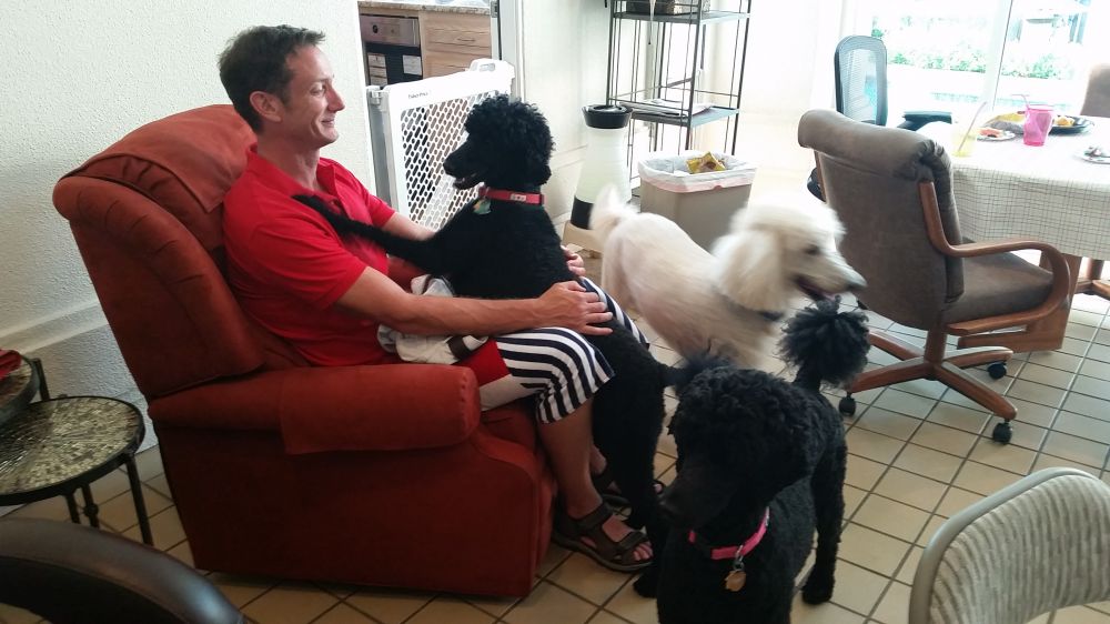 表嫂养的三条宝贝Poodles特喜欢和爱动物的大叔撒娇。