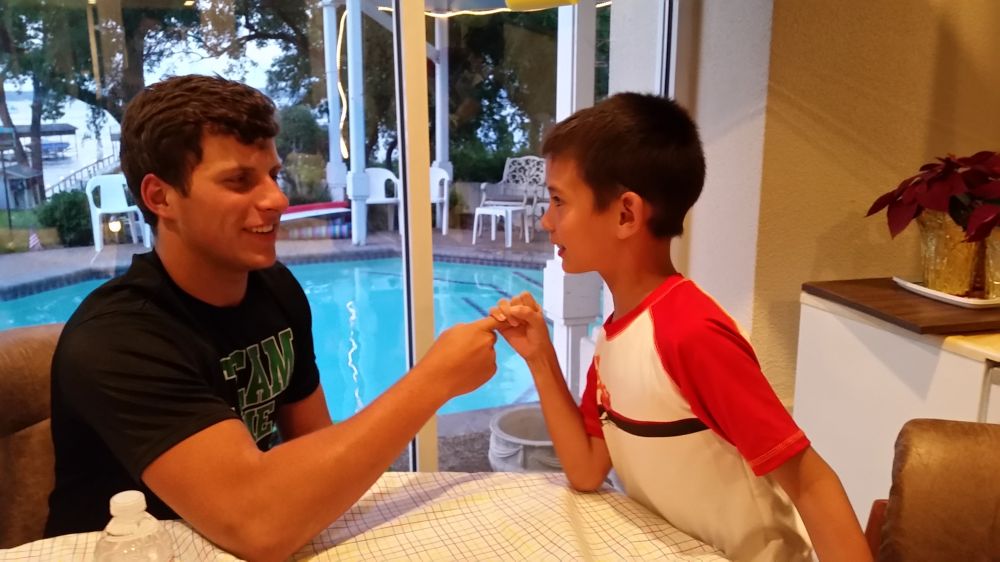 表哥读高中的外孙女第一次带男朋友回家过节。小帅哥是学校橄榄球队的,不但相貌英俊,体格健美,而且非常谦逊有礼,把老老少少的女人们都迷得团团转:)当外婆的表嫂说:“Such a good-looking nice young man! He makes you want to be young agian!" LOL!