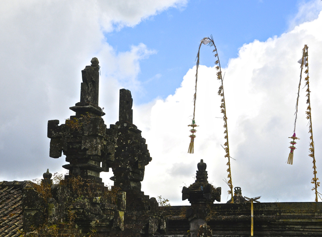 次日醒来,雇了部SUV在岛上漫无目的转悠。司机是本地人,英语说得磕绊,正好给我沉默观察的机会。视觉冲击力最强的是庙宇,风格象是日本奈良神庙和柬埔寨吴哥窟的混血儿。我懒得细考其史,对于建筑我向来只看外形而忽略内涵。挑了两个庙参观,一个建于1928年,远处的两座火山喧宾夺主,远比寺庙抢眼。始于15世纪的另一个庙建在山顶上,有点浙江普陀山的气势。我对这两座庙宇都缺少感觉,倒是小贩卖的一种竹子风铃工艺简单但构思精巧,风吹过会发出泉水叮咚般的妙音。