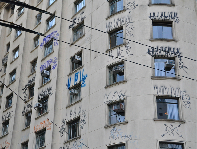 里约街头的涂鸦(graffiti) 是这个城市的纹身,就像和黑帮成员谈恋爱,对方暴力背景制造出的心理悬念对特定人群有致命魅力。作为世上最不安全的旅游城市之一,里约吸引对暴力与色情多少有点好奇甚至暗恋的游客,我猜想。不过,在Santa Teresa 贫民窟的电轨车站等车时,看到一群北欧游客紧张兮兮偷着拍照,心里还是有点滑稽感。其实,贫民窟的危险被故意放大成旅游卖点,就像肯尼亚马赛土著的跳高舞,北极因纽特人的雪橇行,都是刻意营造给游客看的伪人文风景。