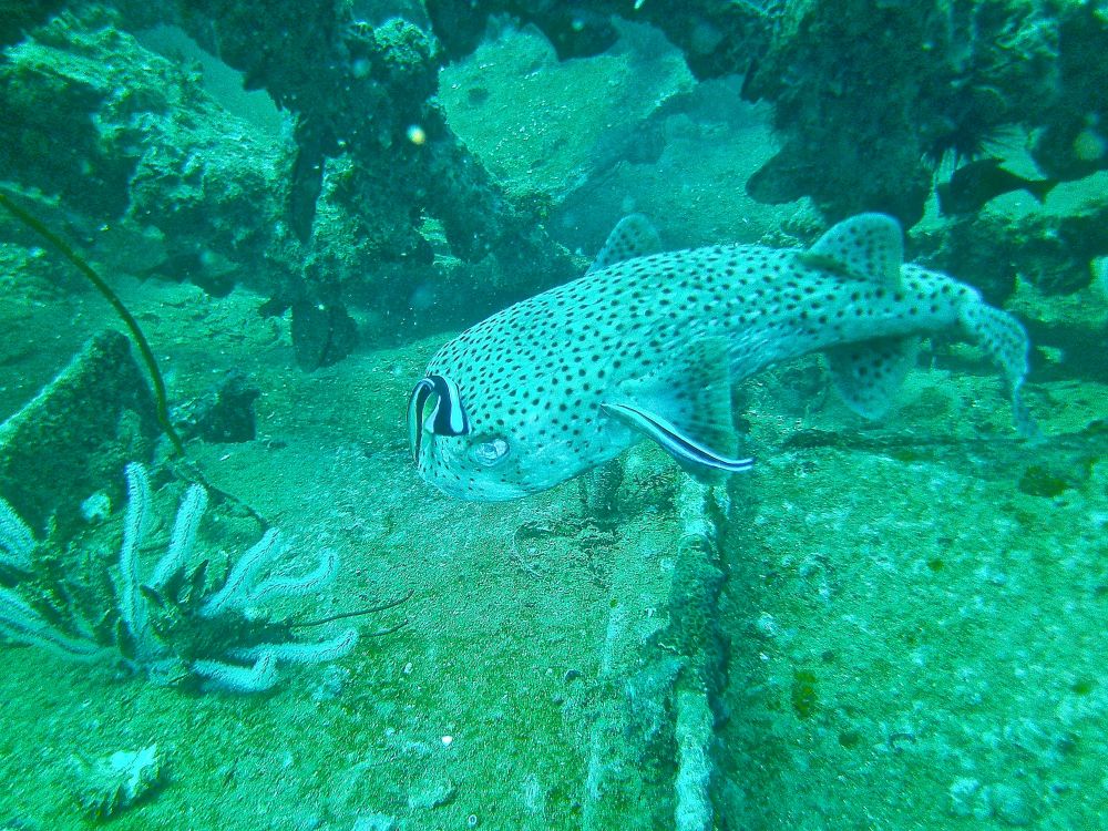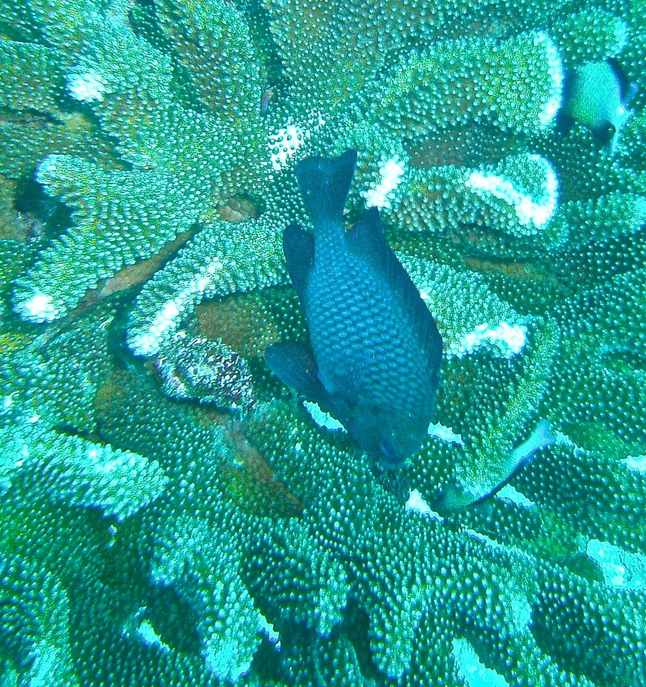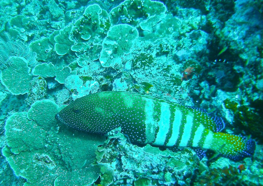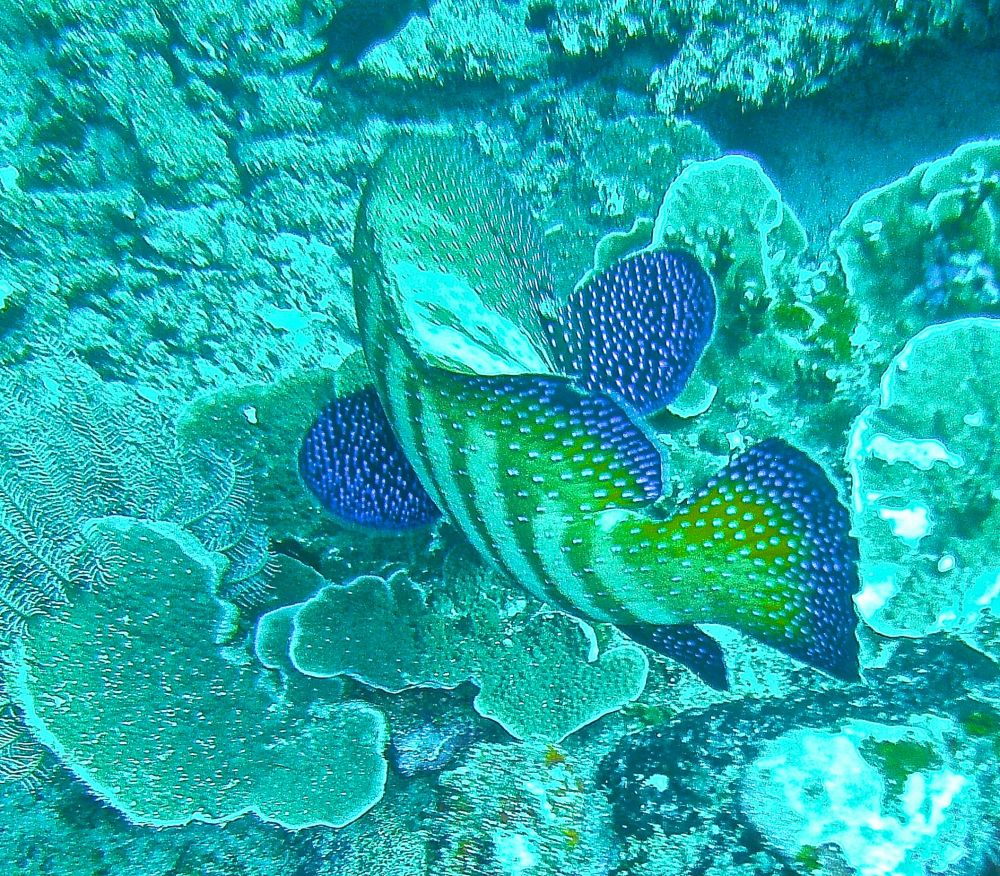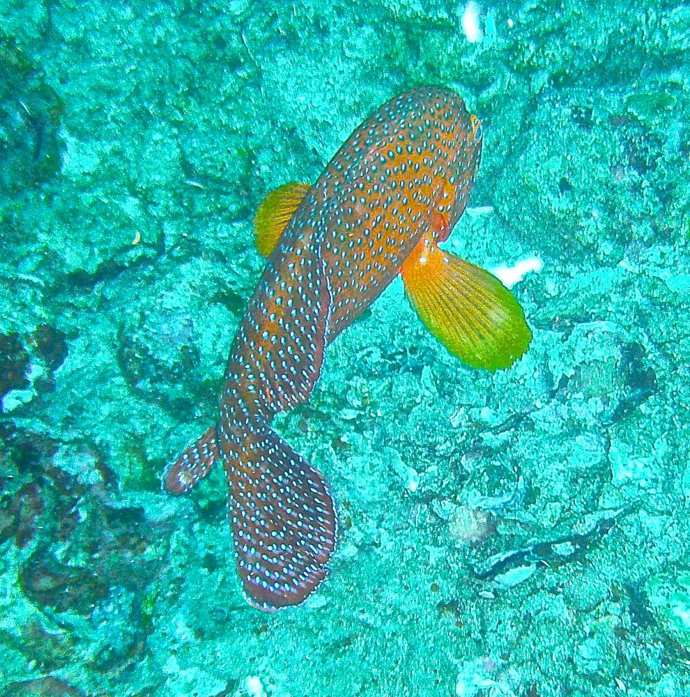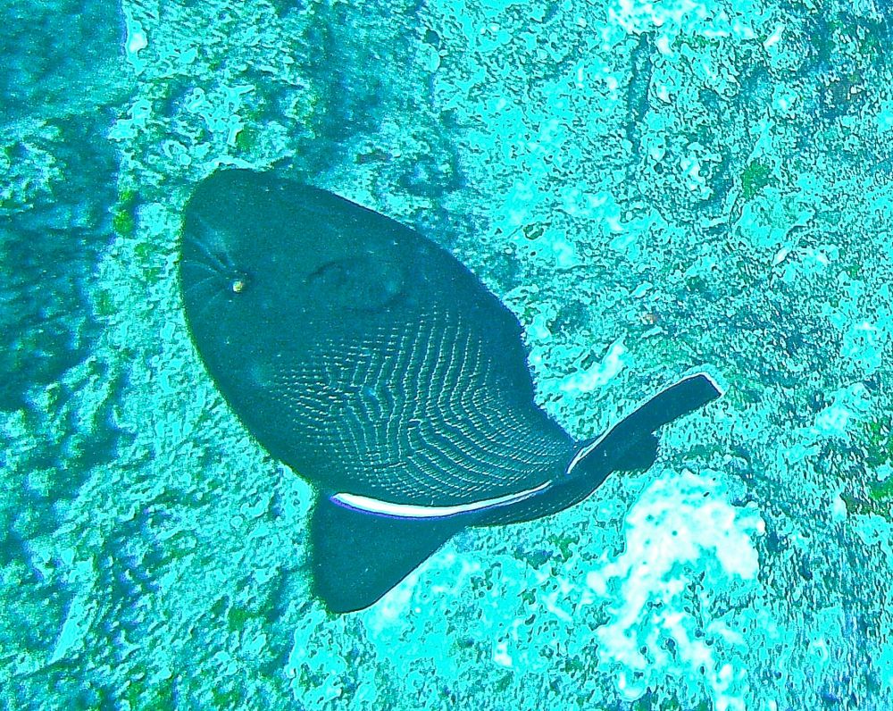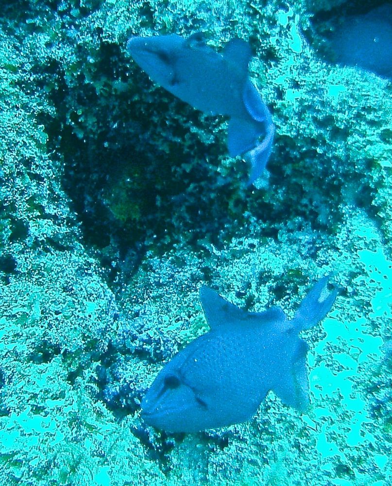 沉船潜(wreck dive)时看到这条鱼,它挣扎不停却无法摆脱鱼钩。我用潜水刀割断鱼线,鱼儿飞快地游远,我的心也轻松了。问泰国教练鱼儿能否成活,他说2-3周后鱼钩会脱落,鱼儿一般都能活下来。