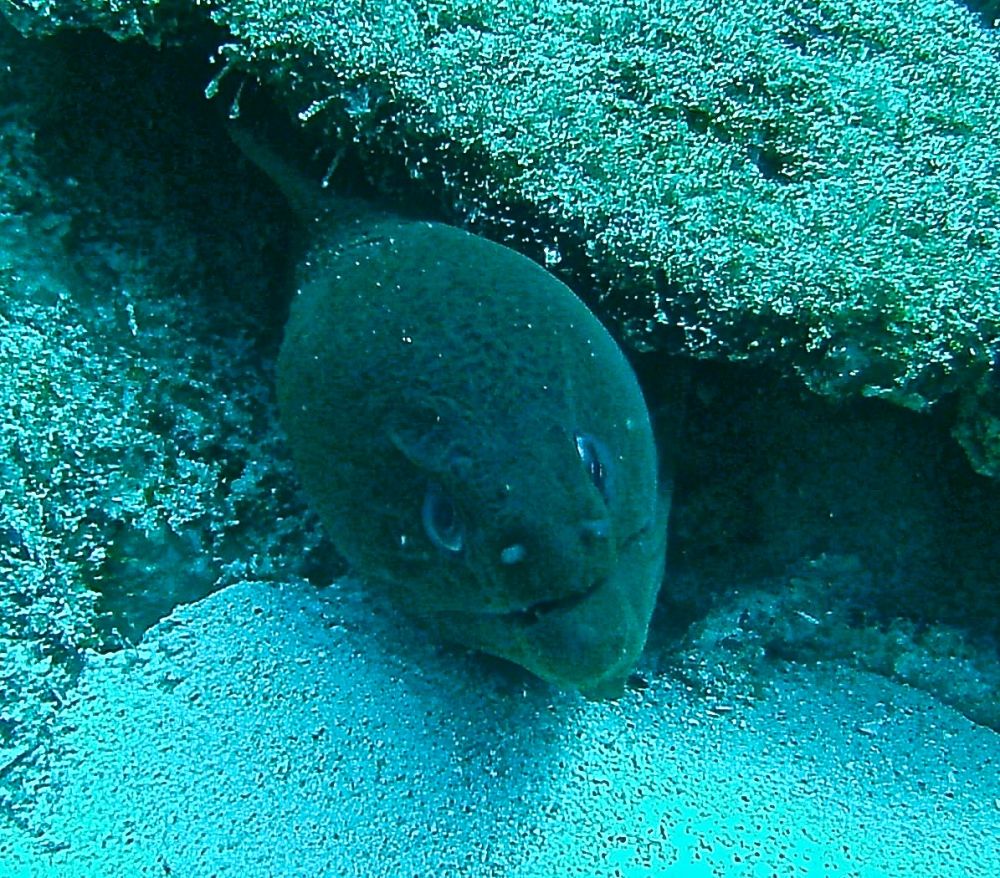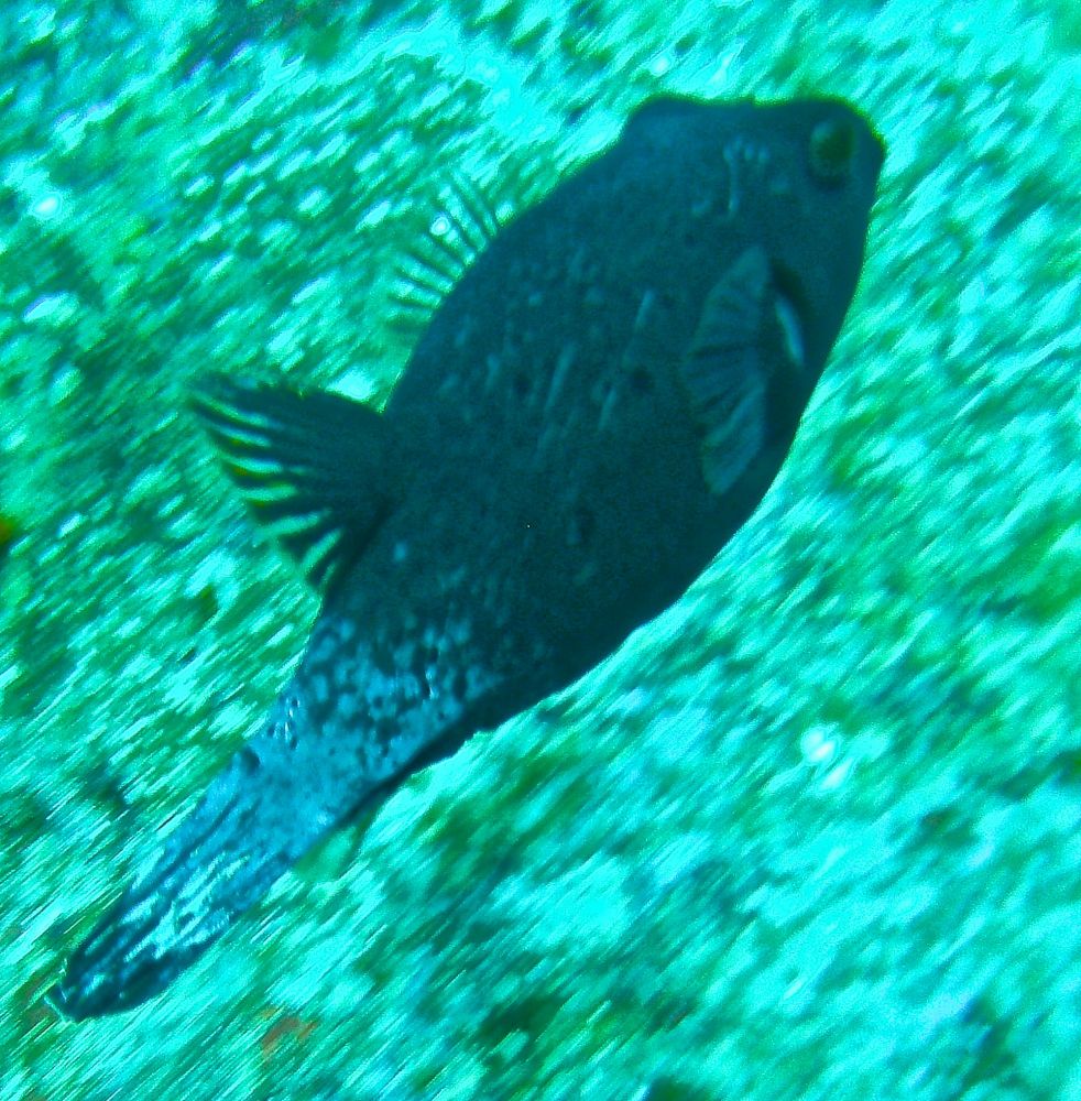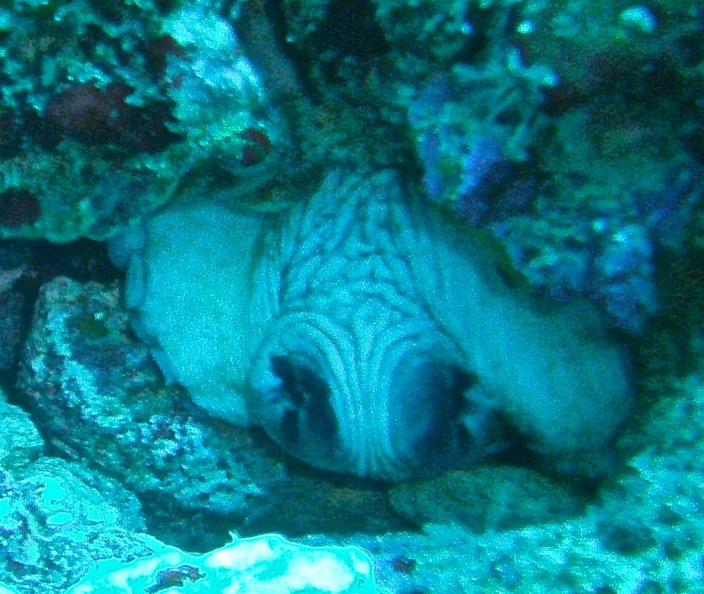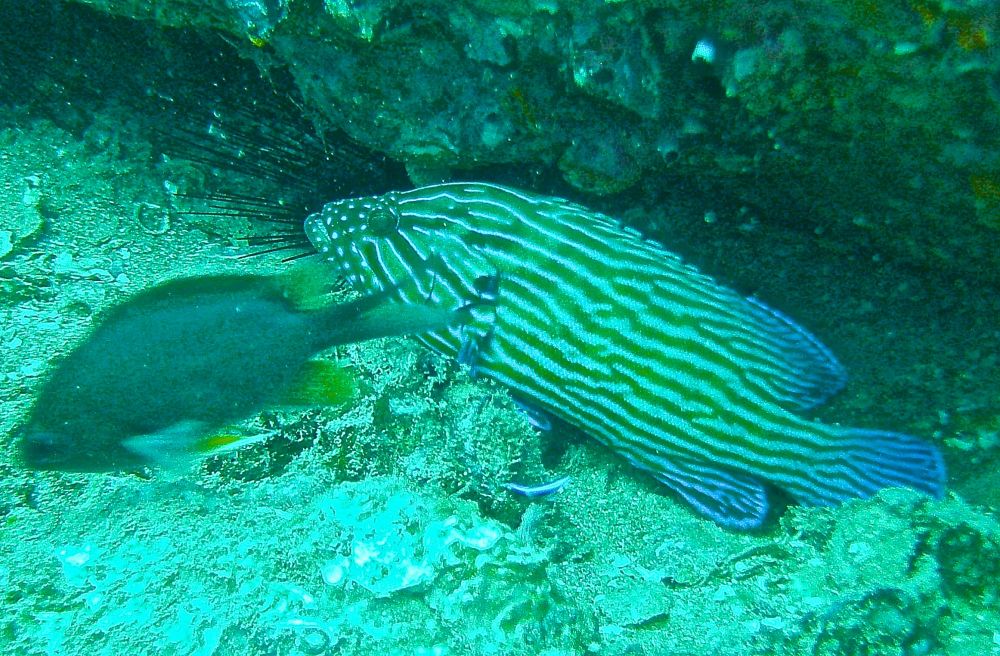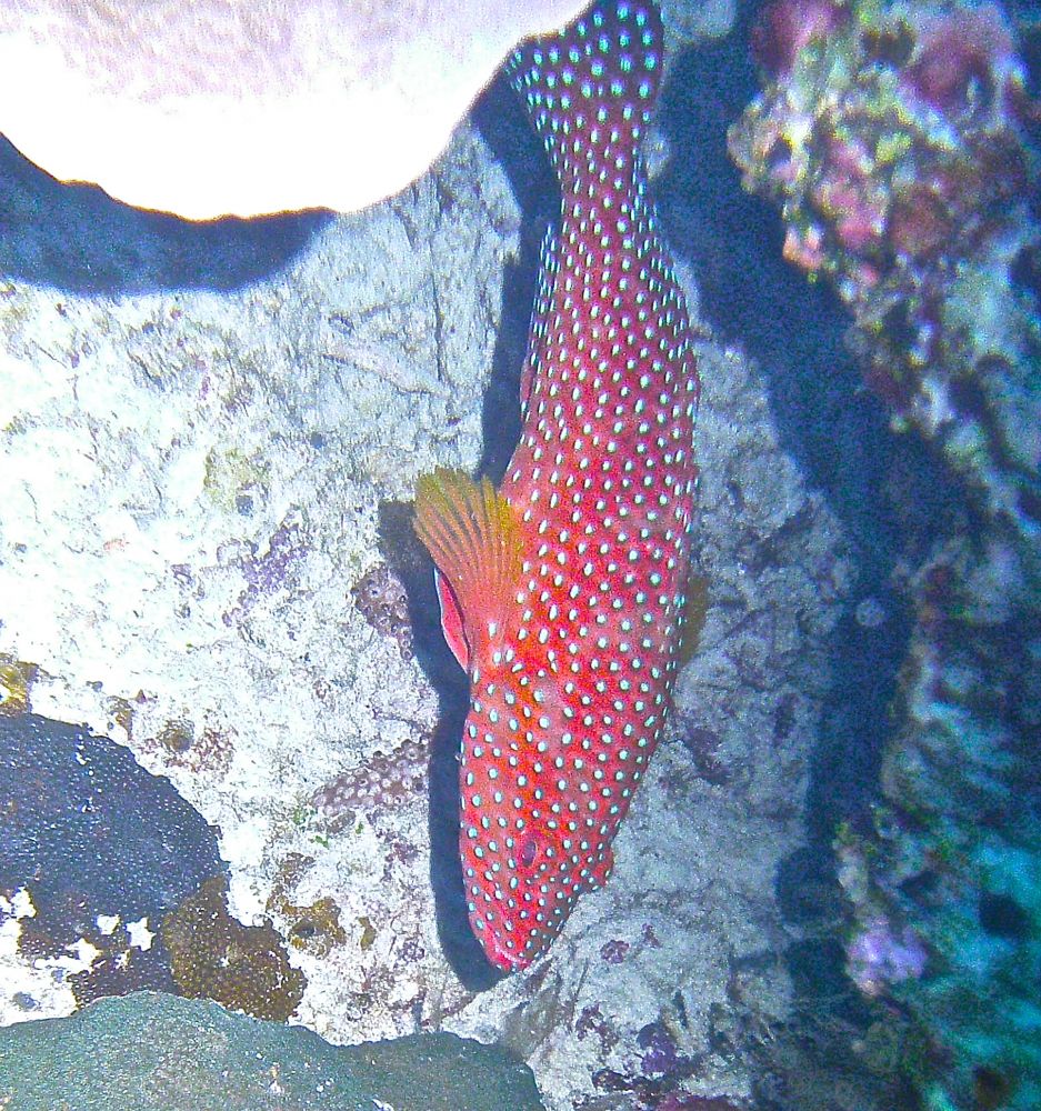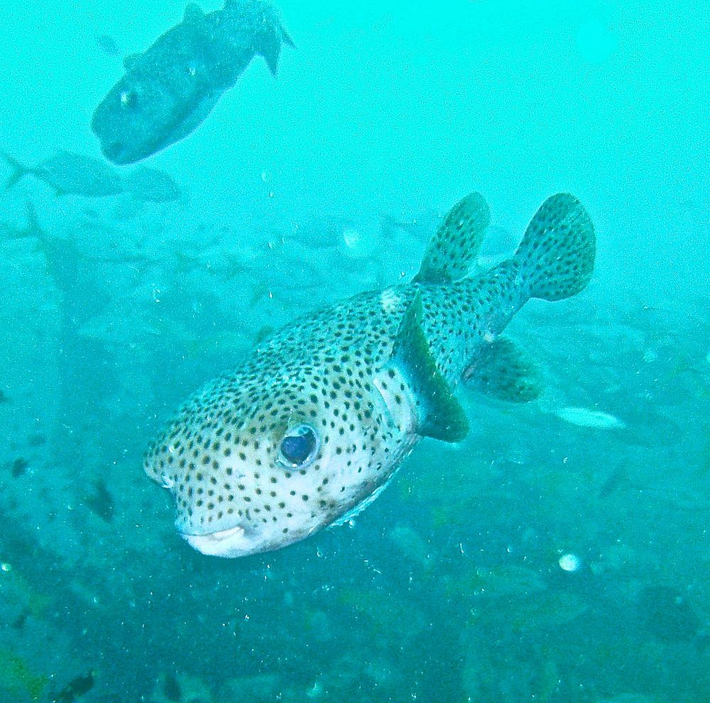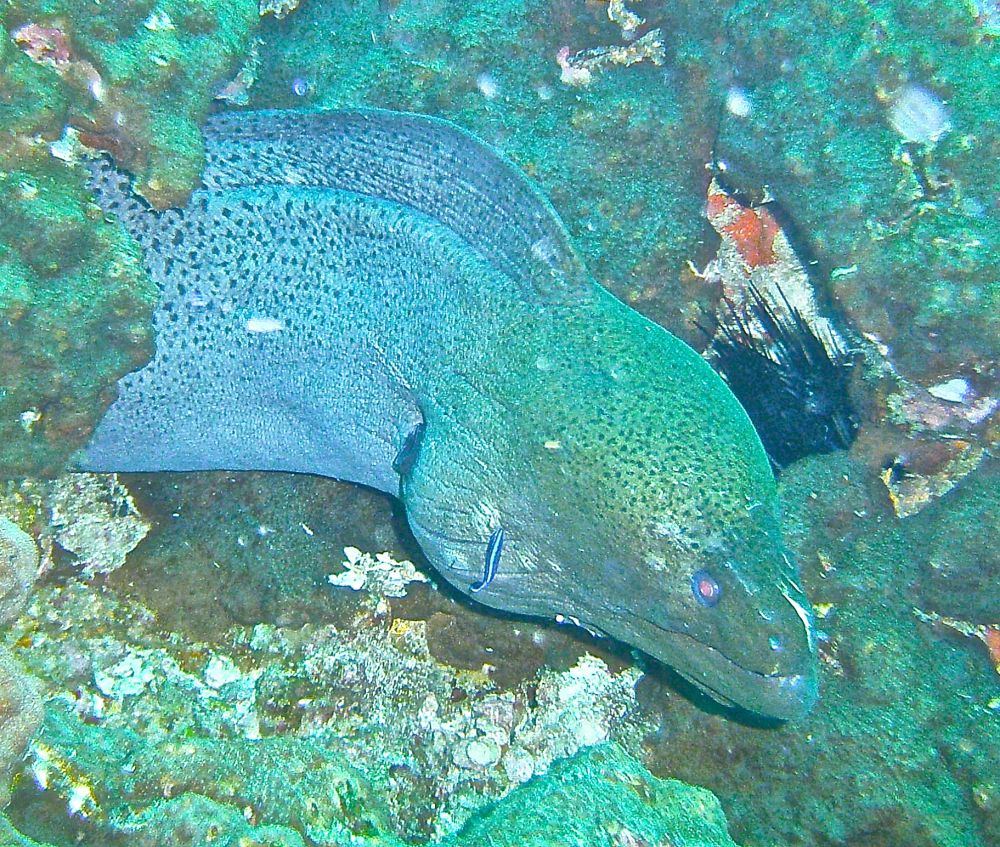 沉船潜(wreck dive)时看到这条鱼,它挣扎不停却无法摆脱鱼钩。我用潜水刀割断鱼线,鱼儿飞快地游远,我的心也轻松了。问泰国教练鱼儿能否成活,他说2-3周后鱼钩会脱落,鱼儿一般都能活下来。