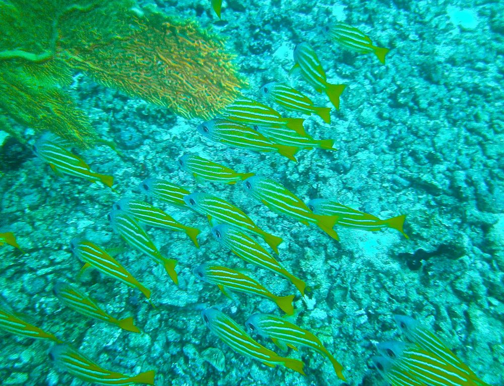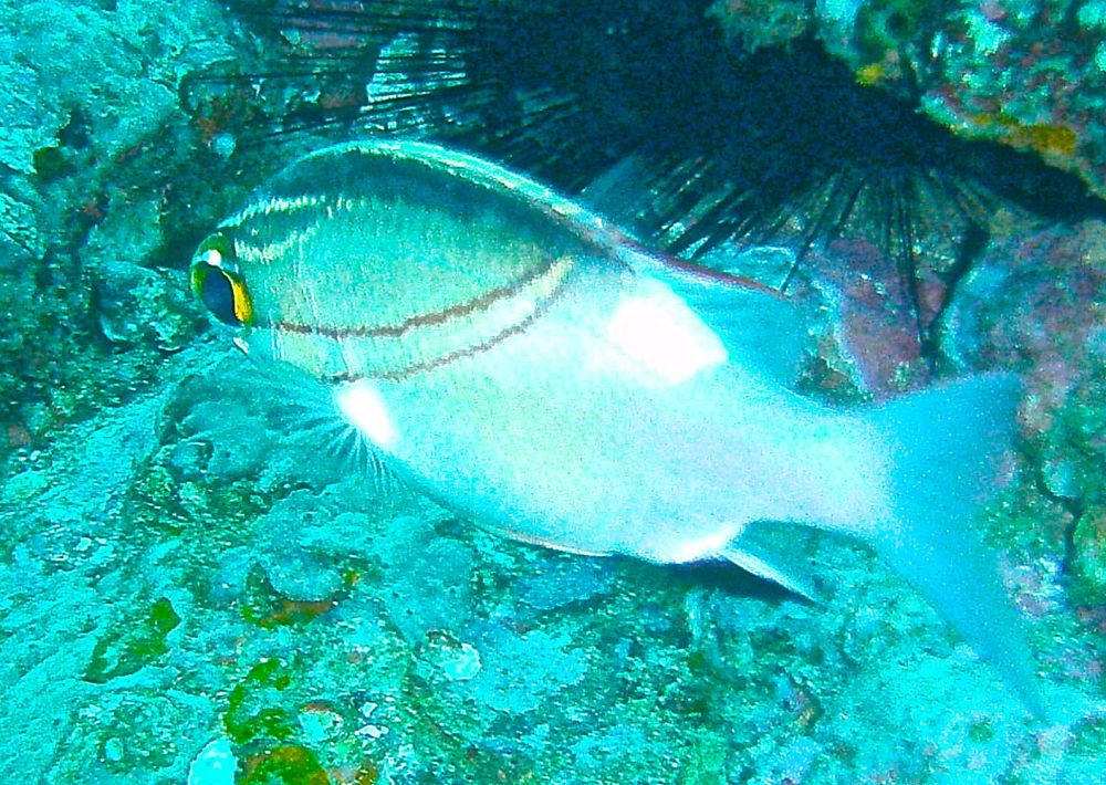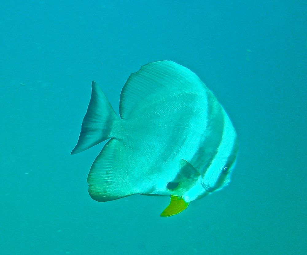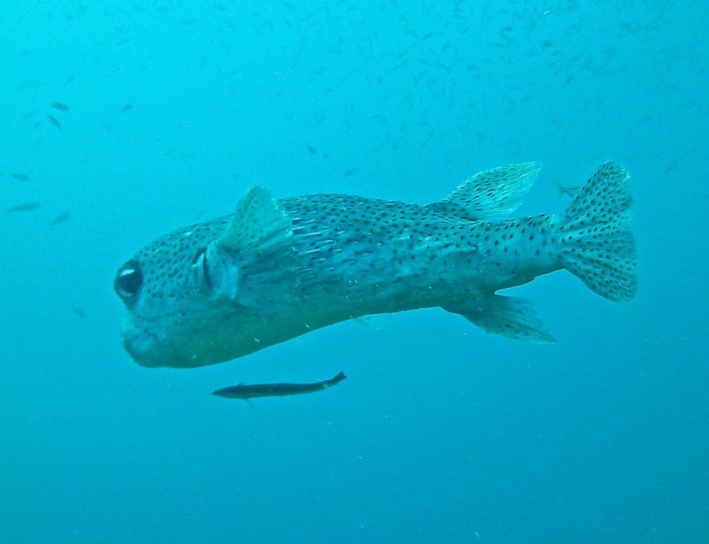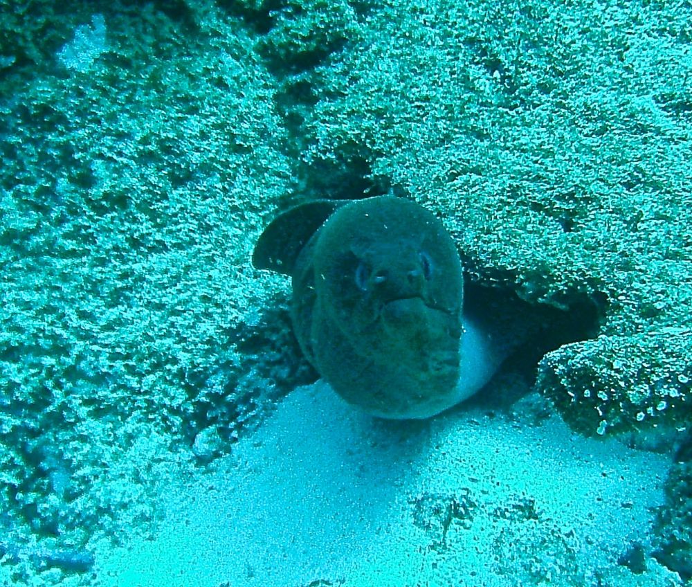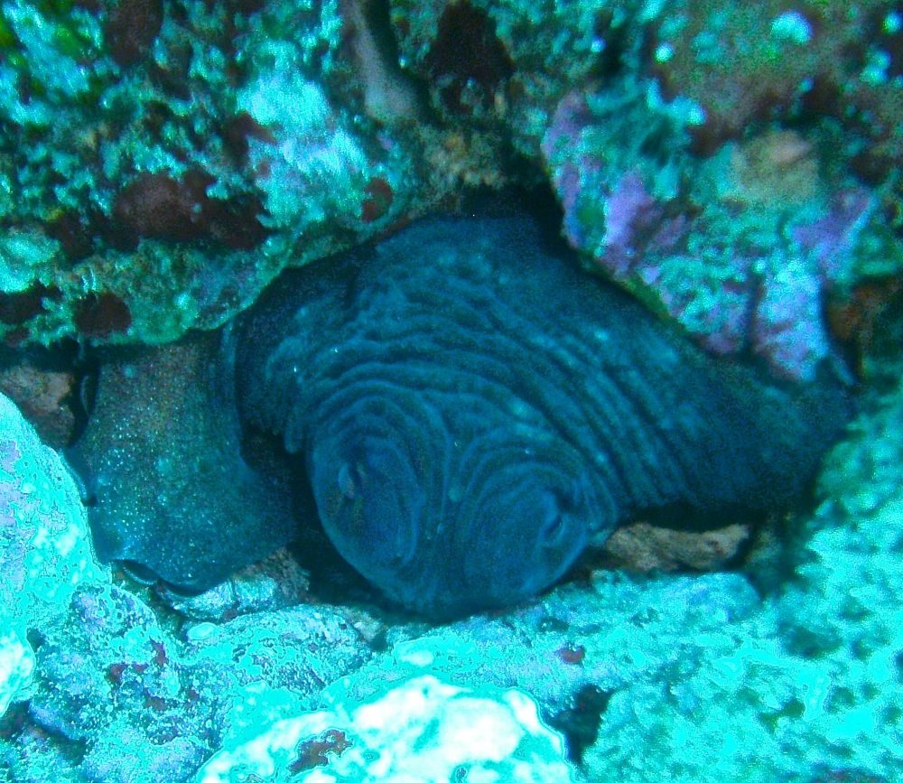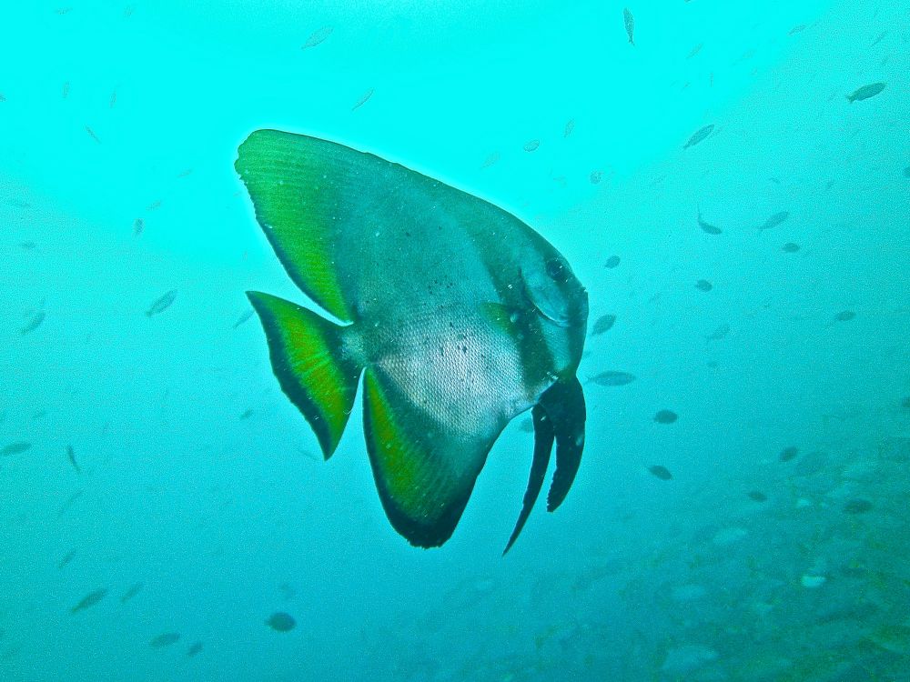 沉船潜(wreck dive)时看到这条鱼,它挣扎不停却无法摆脱鱼钩。我用潜水刀割断鱼线,鱼儿飞快地游远,我的心也轻松了。问泰国教练鱼儿能否成活,他说2-3周后鱼钩会脱落,鱼儿一般都能活下来。