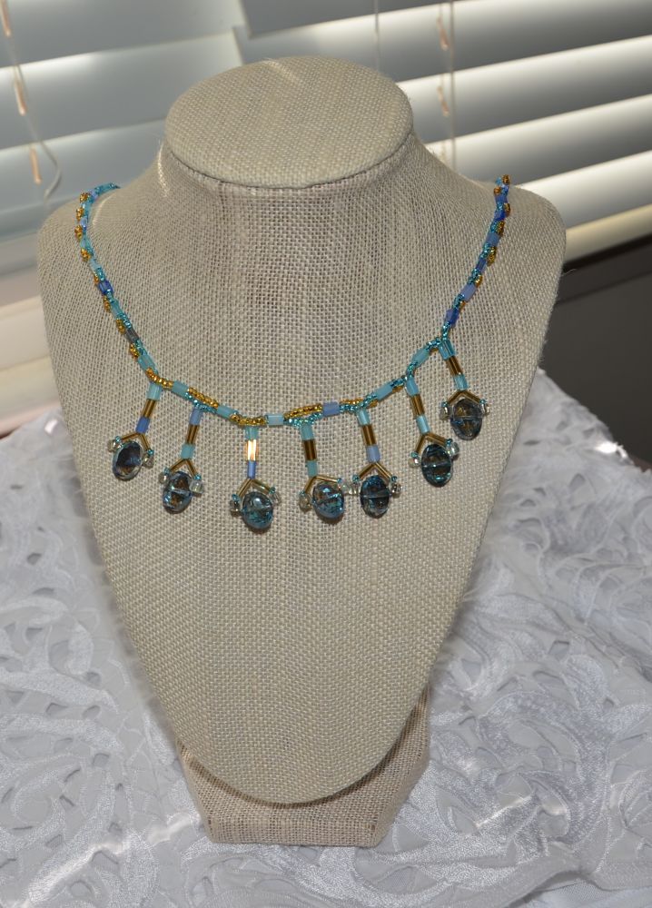 7. Another blue bead necklace.