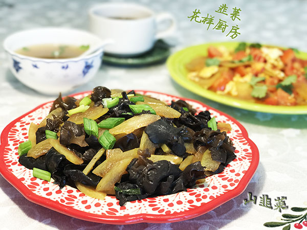 葱姜蒜爆香先炒西瓜皮薄片,6,7成熟再下木耳同炒。不要忘了用蚝油调味。为避免炒西瓜皮糊锅,火候不宜太大,为保证口味醇香,不要加水。