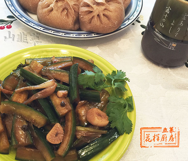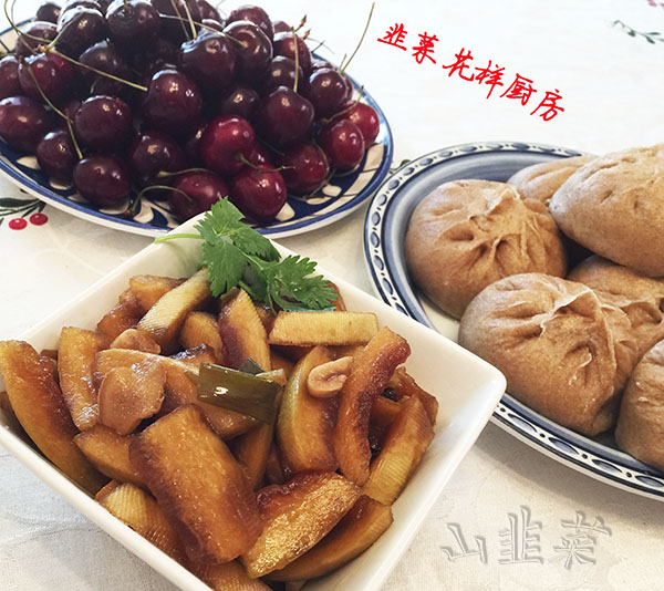 第二天的酱西瓜皮模样是这样滴。鲜,咸,脆,香是酱西瓜皮的最明显的口感。一同出镜的,还有粗面肉包子。
