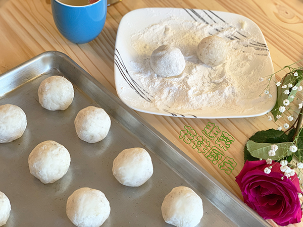 将剩余的土豆泥包入剪下的虾肉,做成土豆元宵,蘸干糯米粉,放烤盘上,备用。温馨提示:土豆泥一定要有硬度,不能过软。