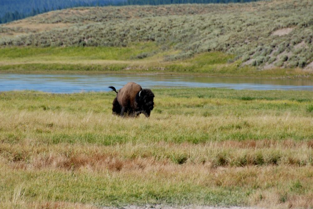 黄石是野牛的王国, 可咱这次在头三天愣是连一头也没看到, 告诉别人都为之惊奇, 现在想来主要是前三天都在温泉和喷泉区, 经过七月流火, 野牛和很多动物都从那个区域撤离了.