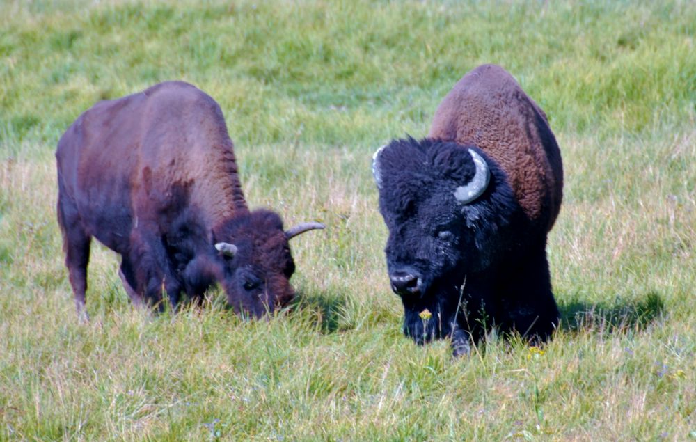 4.车过海登山谷, 总算看到了野牛, 这下孩儿们才彻底兴奋起来, 把从昨天晚上开始的不高兴一扫而光.