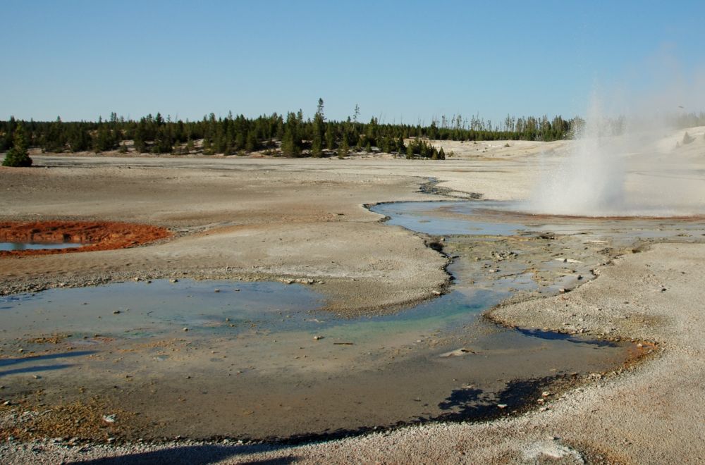 黄石是世界上最大规模的温泉集中地,形态各异的大小温泉几乎能以各种方式、在各种地方出现。黄石地底大面积的地热带造就了温泉林立的奇观,有一部分温泉在地下由于岩石结构的原因会集中形成巨大的压力,这种压力会定期如火山喷发一般释放出地表,也就形成了间歇泉. 诺里斯是间歇泉比较集中地区域.