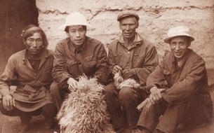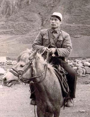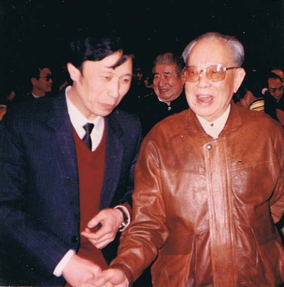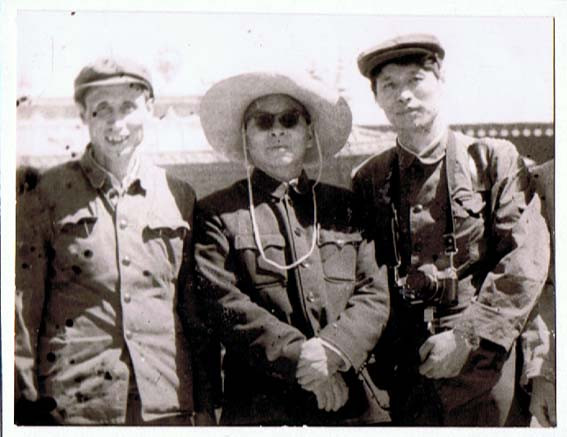 在民族工作会中与全国人大副委员长廖汉生将军交谈,后左为帕巴拉 格列朗杰 ,中为国务院副总理杨静仁。