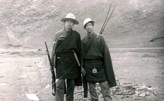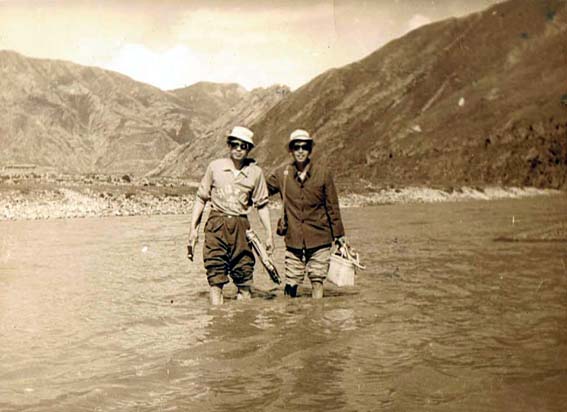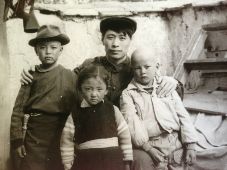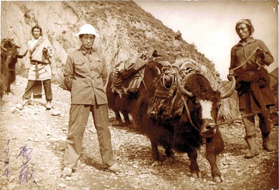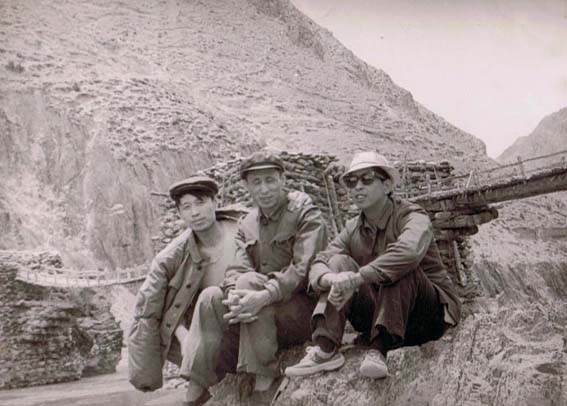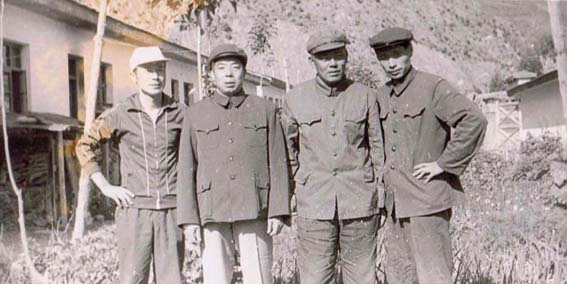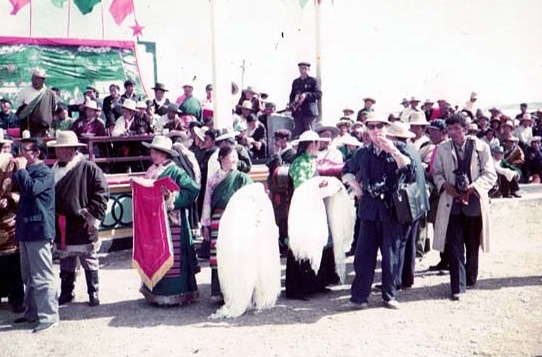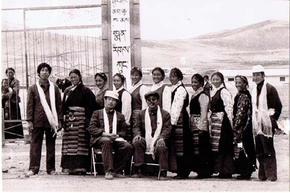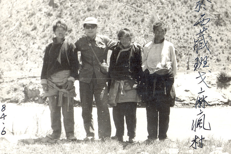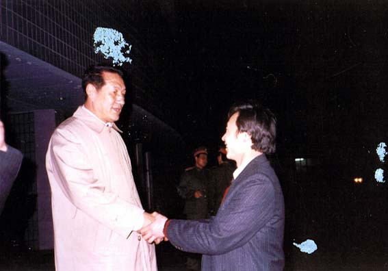 西藏拉萨,达赖喇嘛夏宫罗布林卡,1959年达赖佛从此处逃亡印度。1984年西藏第一书记,西藏军区政委,中将阴法唐[中]会见援藏干部代表,右为本人。