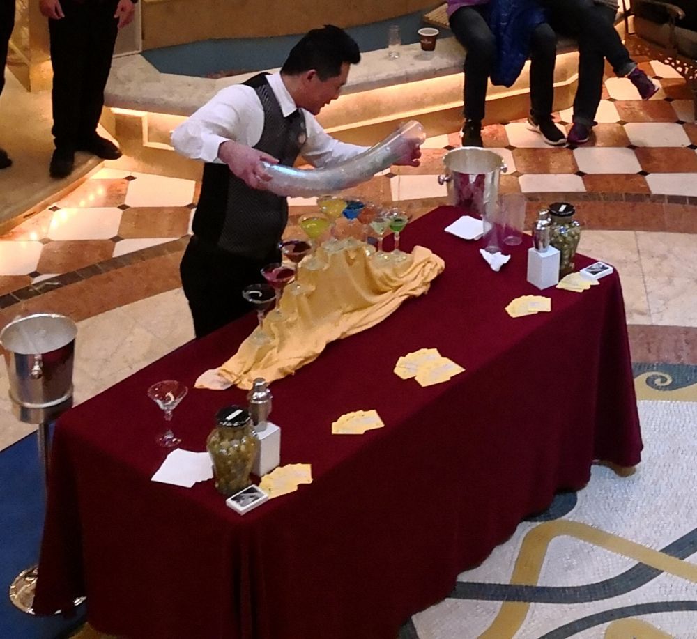 船中央主大厅各种风格的音乐,演奏随处可见;