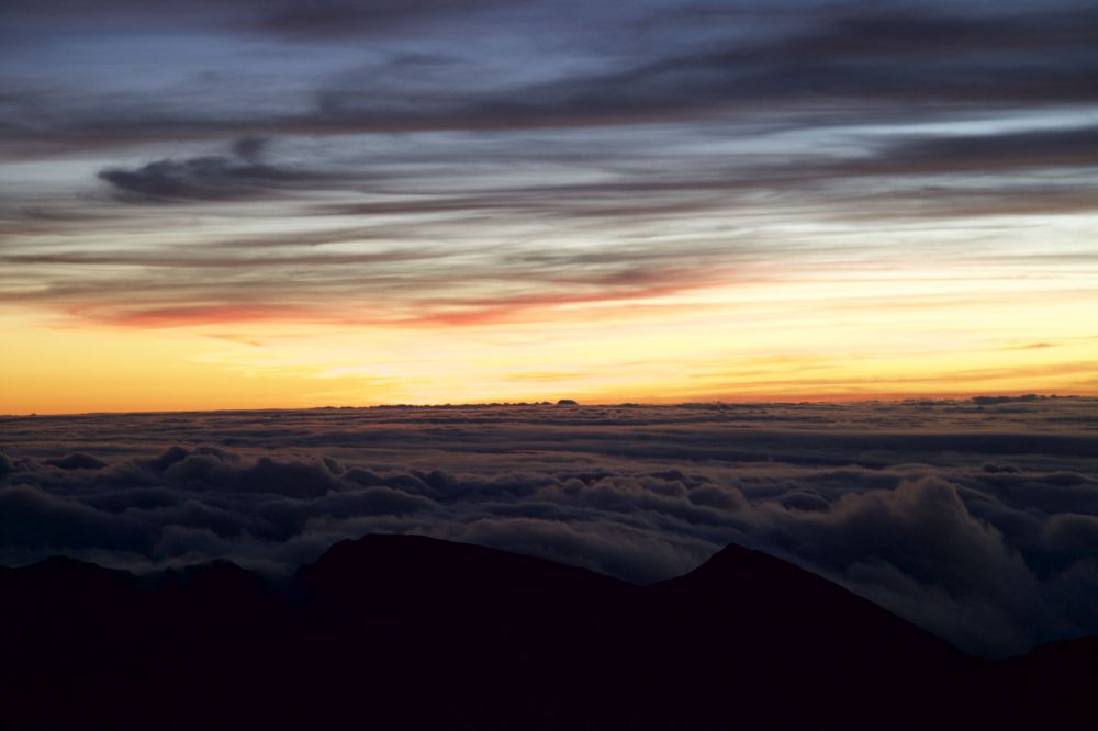 一般到Heleaka是看日出或是日落。日落的好处是不用半夜起床,但是下山的时候黑黑的盘旋在山中小路,很多路上没有护栏,想想觉得不是很安全。而且日出可以看到日落看不到的景象,这个后面再讲,非常庆幸我们做了去看日出的决定。