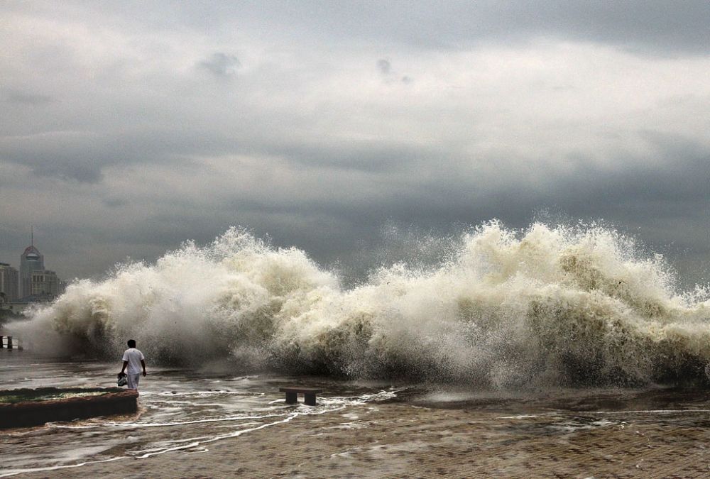 这台风梅花叫起来好听, 可是脾气一点也不好。8月上旬过境山东半岛, 一时间沿海一线浊浪滔天。自幼在海边长大, 这么大的浪我还是第一次见到。只见巨浪排山倒海, 滚滚而来,势不可挡, 猛然撞在堤坝上,伴随着巨大的轰鸣声,顿时浪花四溅, 泡沫横飞,让人一下体会到了当年苏老先生那句“惊涛拍岸, 卷起千堆雪”的意境。