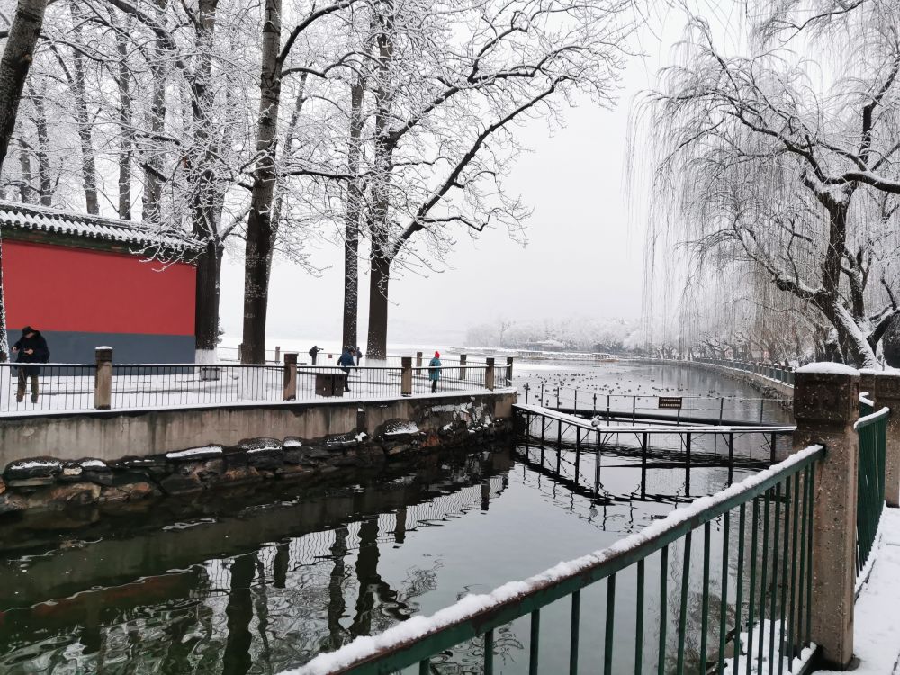 北海没有让我失望——红墙,绿瓦,白塔,寒鸭,树挂.......虽然只有短短几小时(很快温度上升,雪就开始化了)却拼出一幅完美的古都雪景