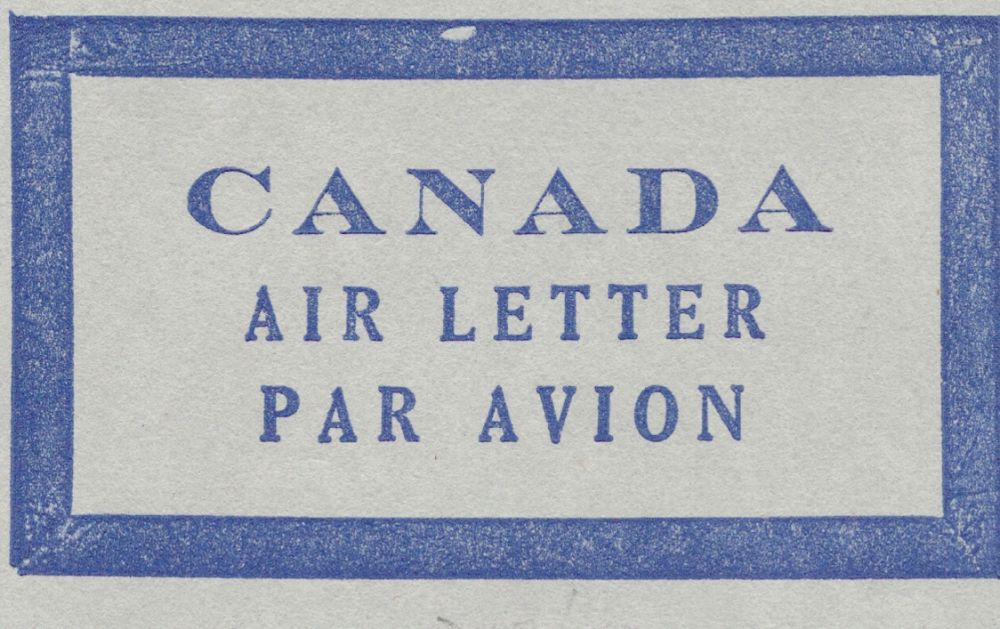 變異品。郵資圖尺寸:21x25毫米,航空標識框與郵資符誌的距離上方爲約40毫米,下方爲39毫米。寄信人地址綫長49.5毫米。航空標識框的上部有一白點,爲印刷變異。“No ENCLOSURE PERMITTED”的長度爲46毫米。