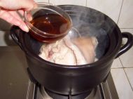 3、收汁时蹄髈已经皮松肉烂,小心翻动不要破坏整体形状。