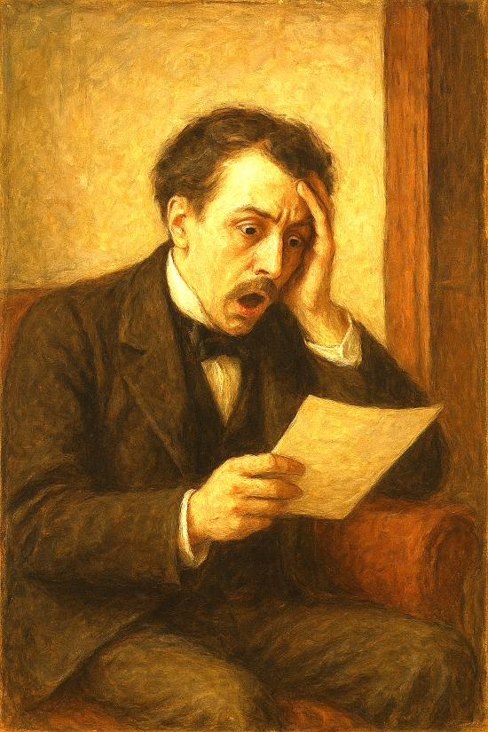 请AI画了小普读信收到噩耗的样子——
