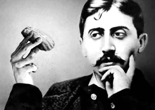 想到了玛德琳小蛋糕。它最能体现普鲁斯特所说的 “在时间当中”,最能证明过去的一切都能在时间中复活,被茶水濡湿的小蛋糕,那是妈妈的味道是老祖母的味道,是童年的味道是贡布雷的味道。