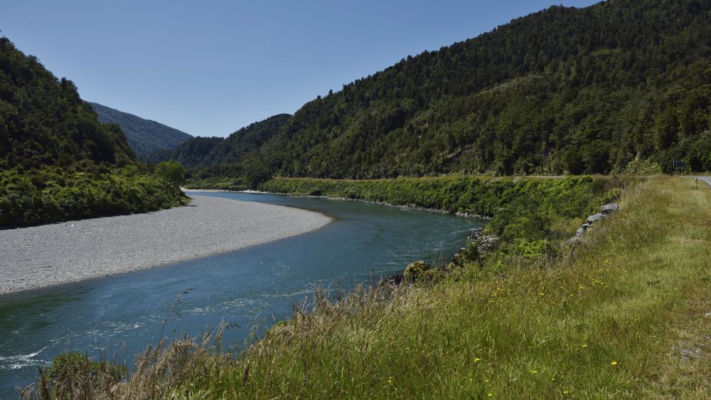 11:00来到海岸转山区的拐点西角镇(WESTPORT)。小镇有居民4111(2014年数据),位于布勒河(BULLER RIVER)出海口,拥有浓郁的南岛气质与风情。新西兰九大步道中最长的希菲步道(HEAPHY TRACK)、大洋洲规模最大的石灰岩拱洞,都在这个区域。没有进镇,沿布勒峡谷观光线路走进布勒峡谷。