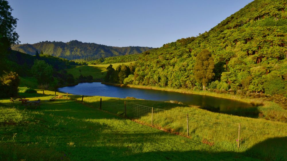 这是一座位于国家公园东部边界的营地,地处大湖背面的峡谷,有松柏翠柳环绕、有谷底堰塞湖相伴。我猜想它也许是当年殖民者清剿毛利残部的基地(外来树种为证)。营地只有两座主建筑:一座酒吧,一座能容纳10几人的客房,诺大的院子设有停车场及几座零星散布的小仓房。