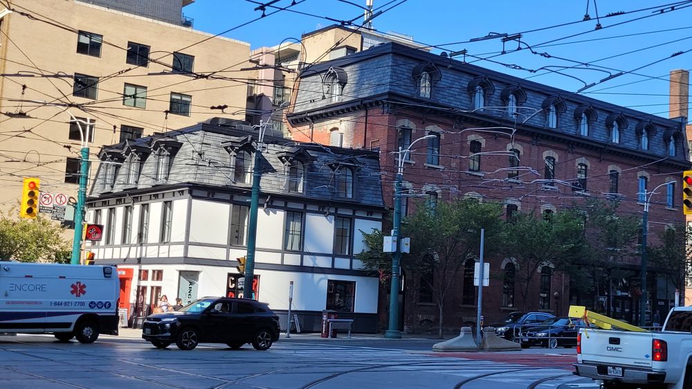 不久就到了 King Street 和多伦多唐人区所在的 Spadina 街相交的十字路口,路口西北角有一座颇有特色的老建筑,以前有一阵是背包客喜欢的青年旅馆,现在改成了一家餐馆。从 Spadina Street 往东,是多伦多的核心区域,繁华时尚,灯红酒绿,是挣大钱也是花大钱的所在。