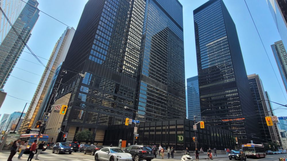 几大银行中只有多伦多道明银行是多伦多土生土长的,其它几家的总部以前都在蒙特利尔。在上世纪七十年代前,该城一直是加拿大最大的城市,拥有银行的总部很好理解。但上世纪七十年代魁北克闹独立,吓跑了英裔的公司。银行和钱打交道,钱去了多伦多,银行也不得不跟着去。蒙特利尔银行大楼建成于1975年,皇家大厦是1979年,丰业银业最晚1988年。加上同时期出现的两大地标 CN Tower 和 Skydome,多伦多终于取蒙特利尔而代之,成为加拿大最大的都市。
